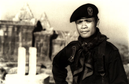 The second trip was two years later, December 2000 to January 2001, which I concentrated on Thailand, based sites, as well as revisiting Preah Vihear. The third trip in late 2002/early 2003 saw a return to Angkor as well as a start on the Cambodian based sites. On this trip I covered four of the five sites I know about in Laos (where there is something to photograph) as well as a high loop drive in Issan in Thailand up to Udon Thani. The third trip happened quite quickly as income was ok and the apartment purchase was settled, in late 2003/early 2004. This was the great adventure, 10 days on the back of a dirt bike getting within 10m of the Thai boarder, up the Mekong to the last Cambodian town before Laos, on slow boat, finding the southern cave (well we tried for three had time to find one) and came close to the Vietnam boarder by very cautious 4x4. There were the last minute negotiations to use the 4x5 inch Sinar in the park (so many professionals with ‘blads and high end 35mm far easier the authorities don’t bother with). After this trip there were about one hundred and eighty sites photographed out of a possible two to five thousand. As this book is put together the fifth and 6th trips are organized, again in December Jan as its the coolest time of year in Cambodia and fits in with the Australian summer holiday. The 6th trip is going to be in April its a sixth day trip to Angkor to do more park photos and have enough photos for a book on Angkor Wat and another on Bayon. I would still like to go back to Koh Ker and do another major adventure around Cambodia, before the roads get even more dangerous. We often get asked “isn’t it dangerous?” to which my standard reply is “not as dangerous as going to the wrong part of any major USA city. Though I have to admit the roads and driving is scary!